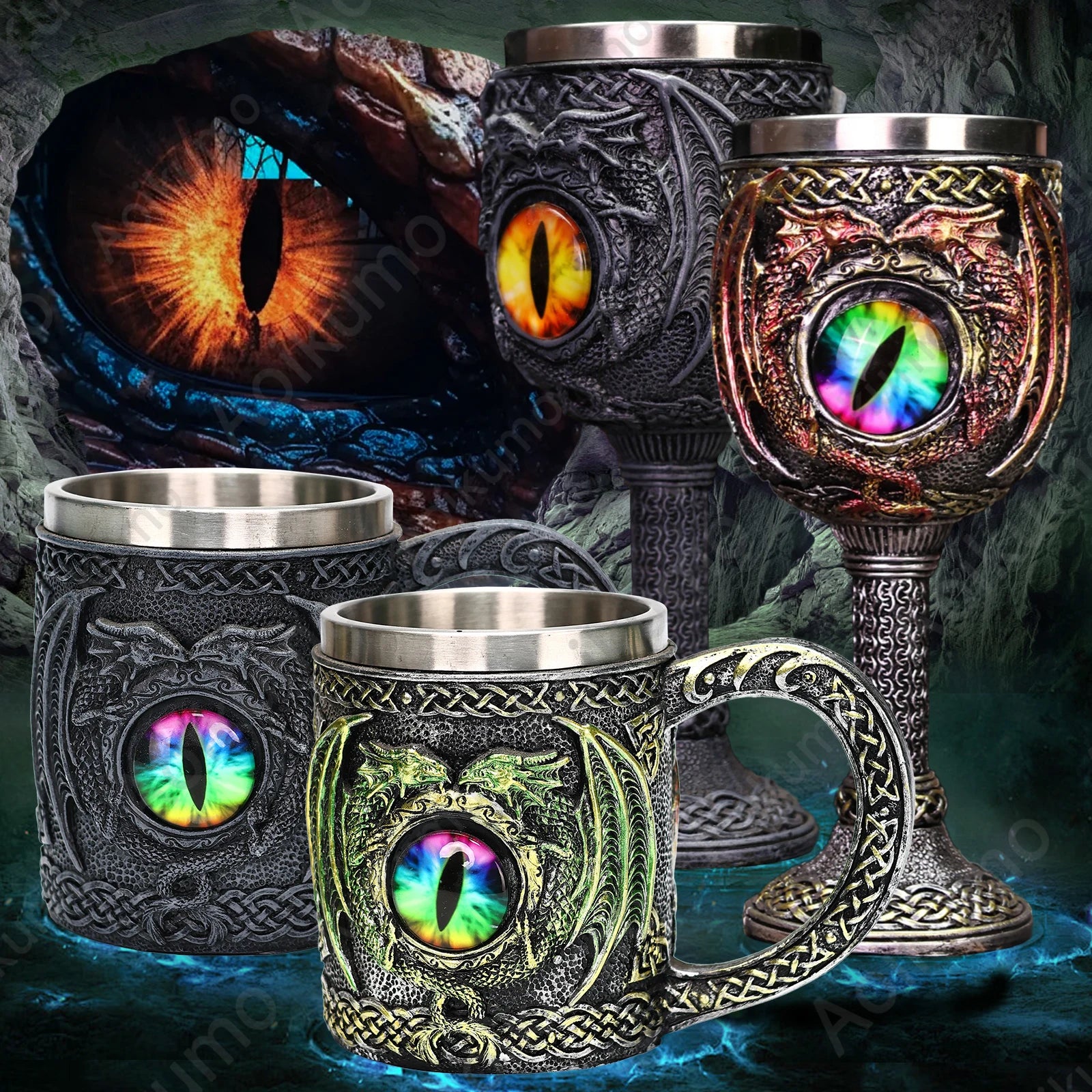 2. Ce gobelet à vin Eye Of The Dragon est fabriqué en polyrésine fine et en acier inoxydable, peint à la main et poli.