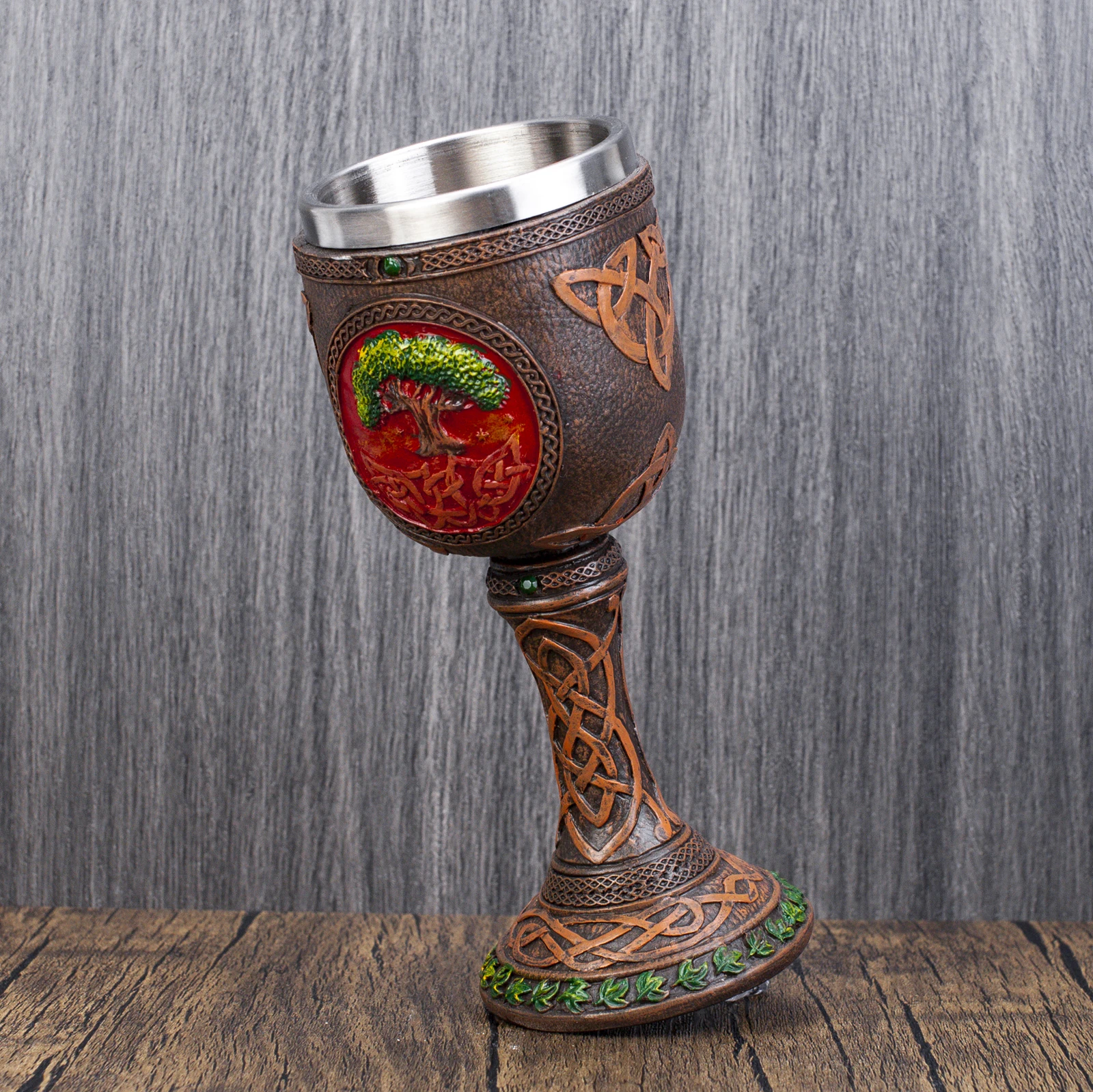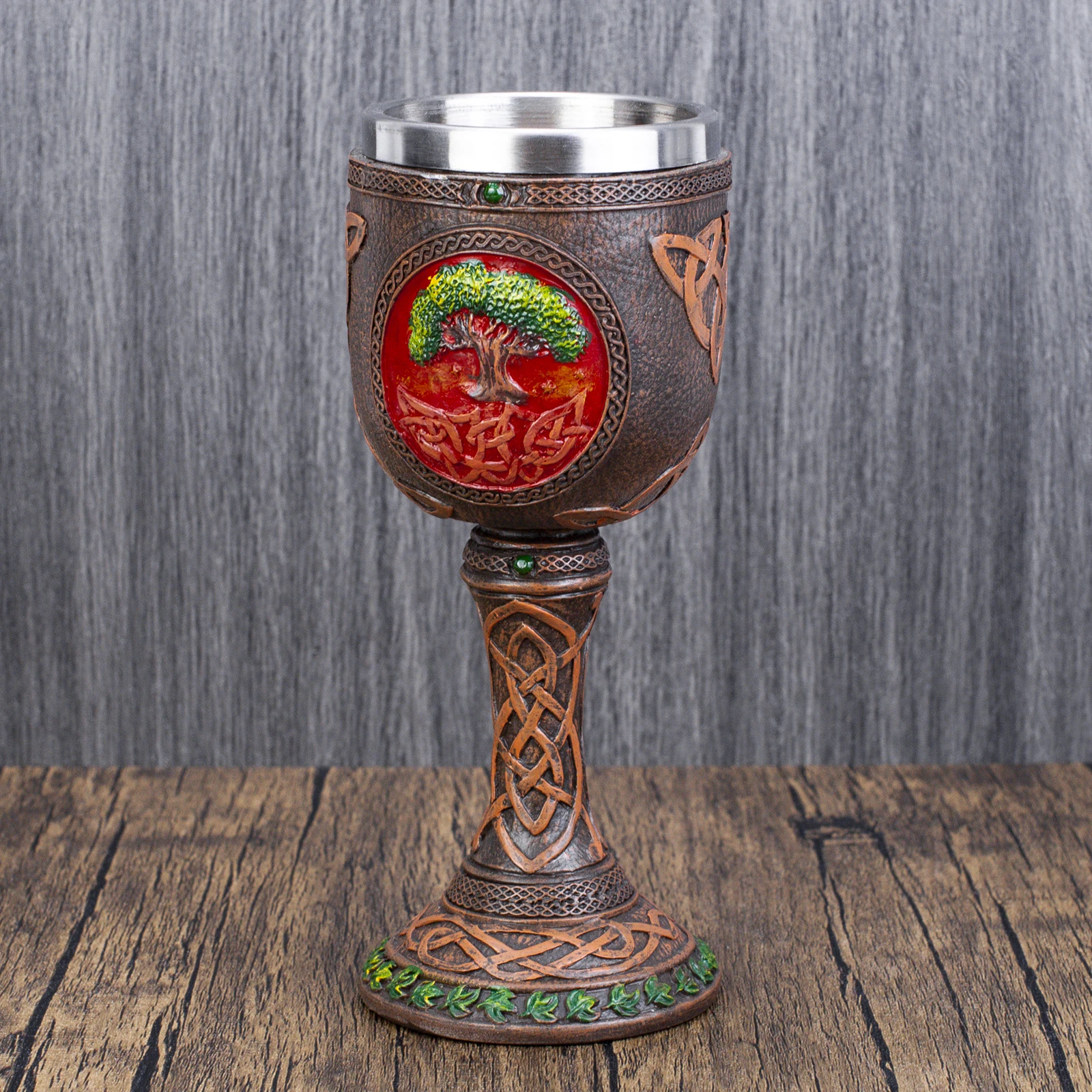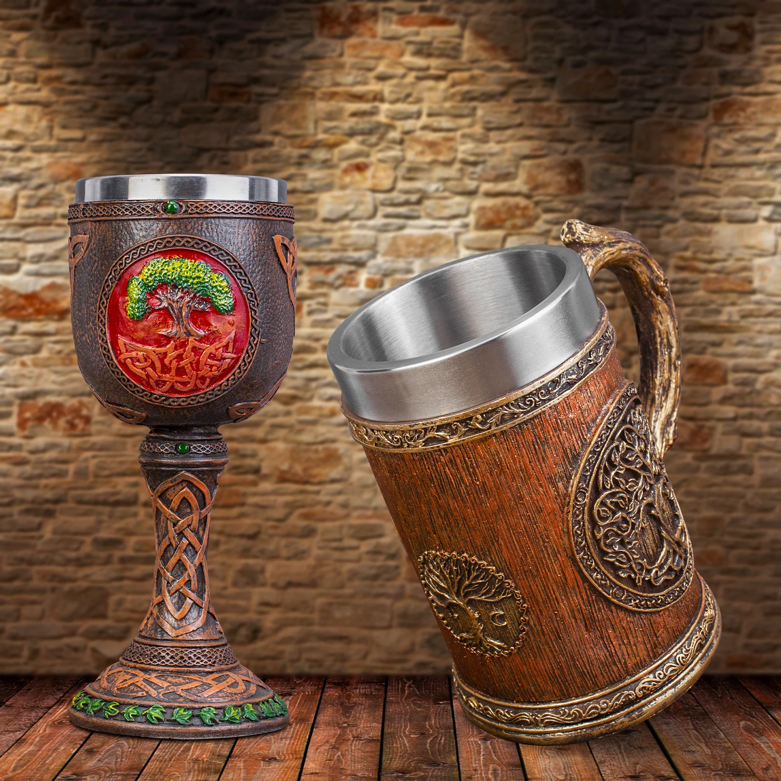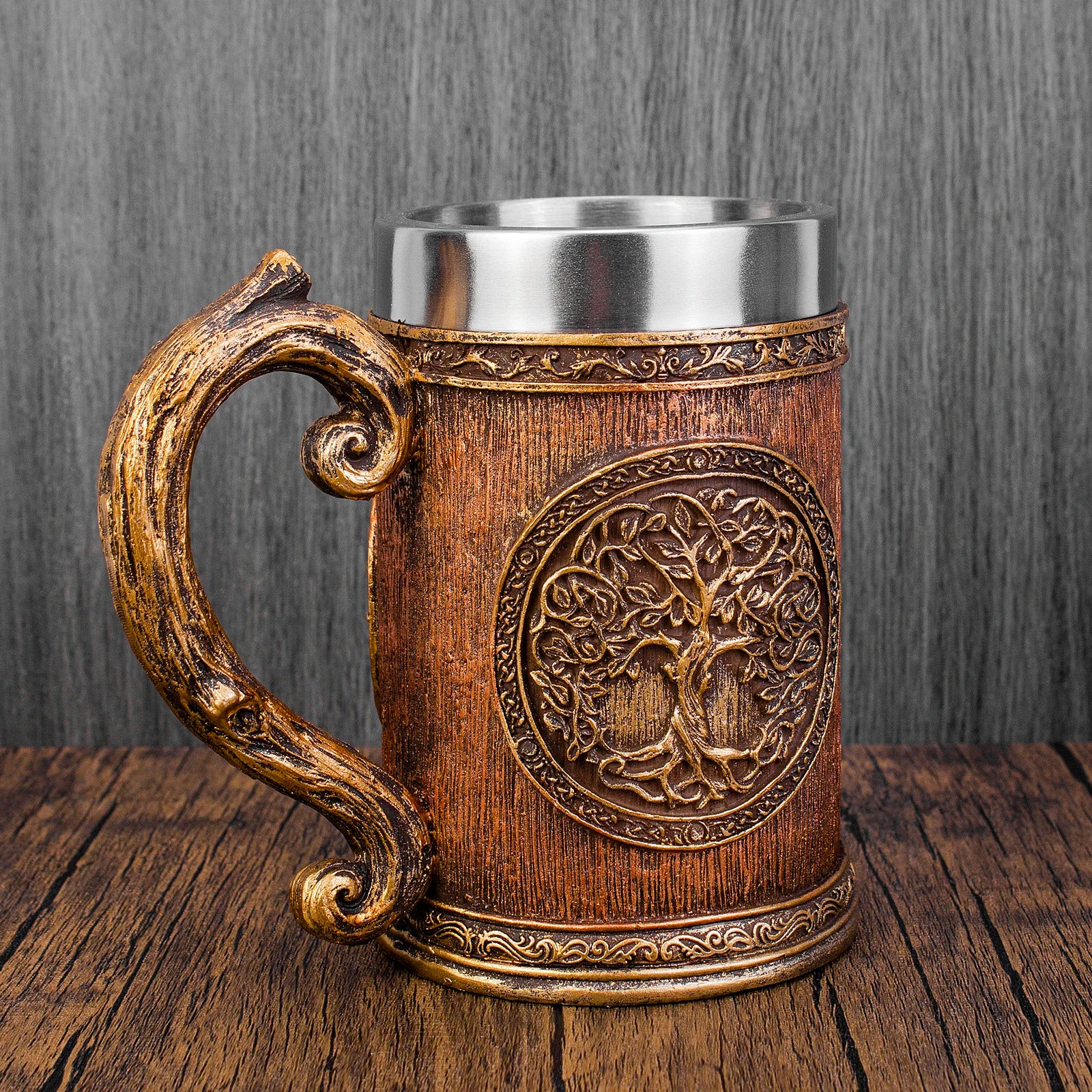 Nom : TRE et gobelet Viking nordique en résine 3D en acier inoxydable.