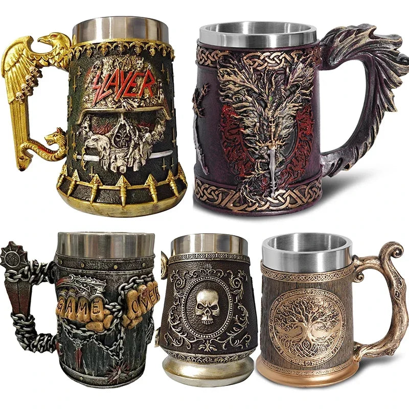 Tasses à bière Norse Myenson, arbre du monde, viking, kokor, baril de chêne, chope en résine, acier inoxydable, tasse à eau, tasse à café, 600ml