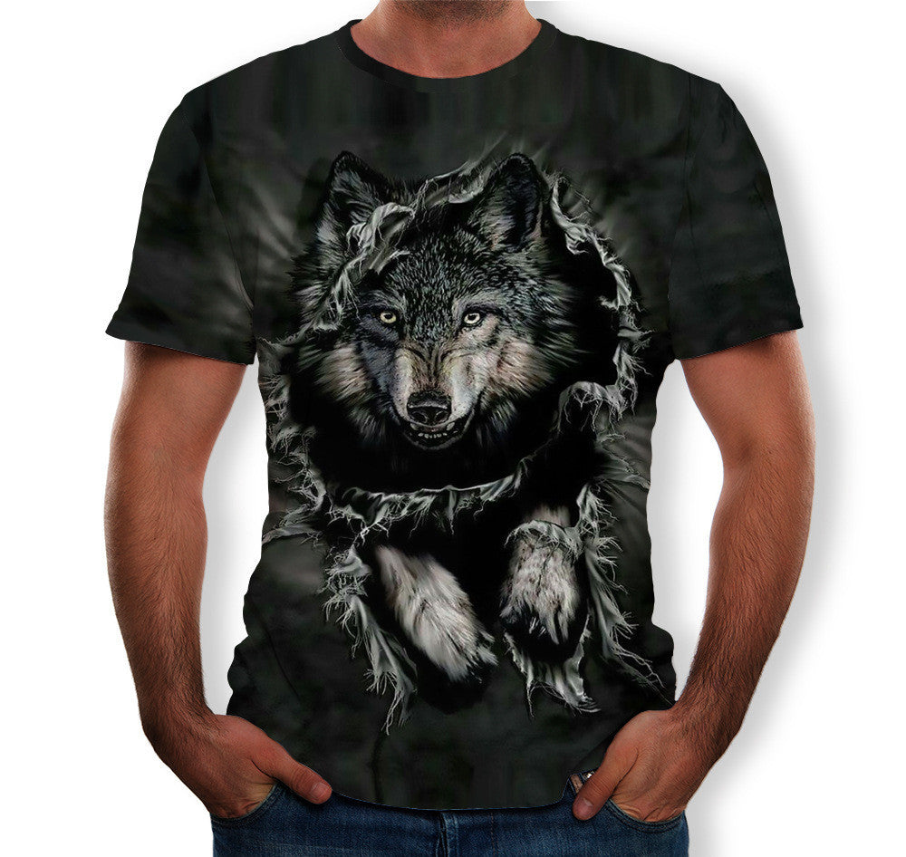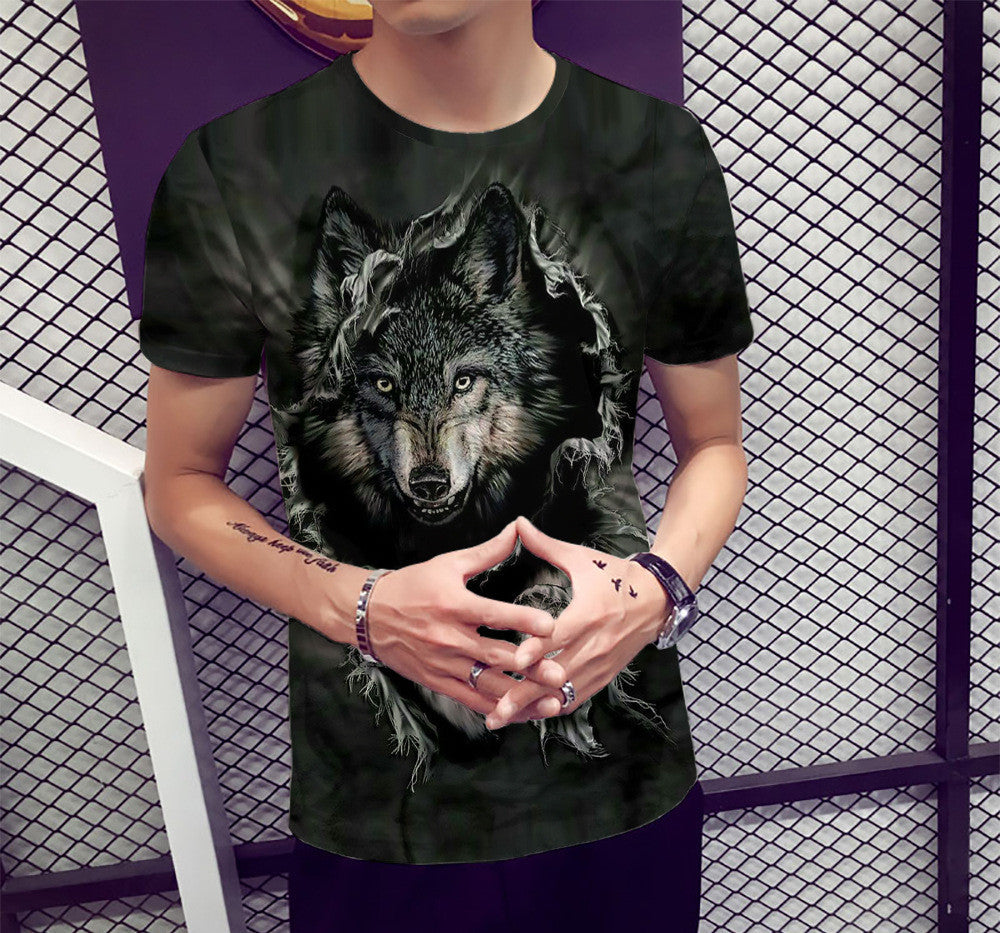 Top wolf 3D printed T-shirt Tide brand short sleeve loose men's top